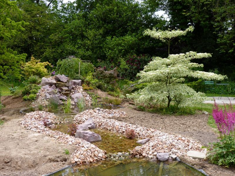 Nous vous créons un bassin d'agrément avec filtration naturelle et gravitaire par lagunage et filtre de pouzzolan.