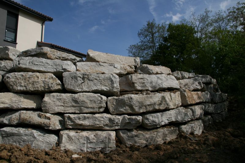 Nous avons les moyens techniques et matériels pour mettre en place des souteinements de terrain avec enrochement paysager.